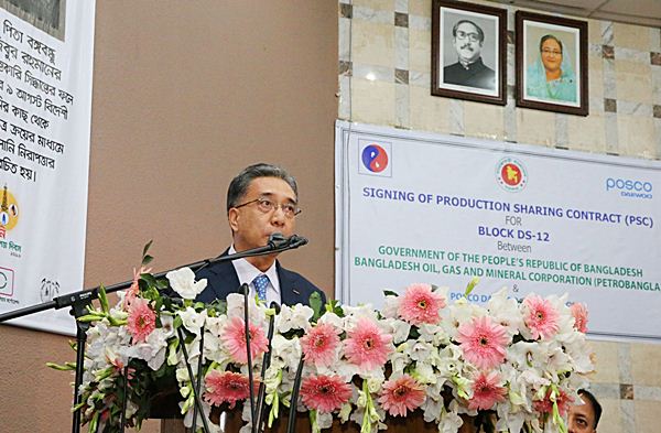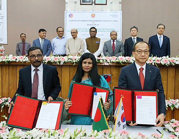 The signing ceremony was held at Petrobangla’s headquarters with POSCO DAEWOO CEO Kim Young-sang; Tawfiq-e-Elahi Chowdhury, energy adviser to Bangladesh Prime Minister; and Abul Mansur Faizullah, chairman of Petrobangla.
