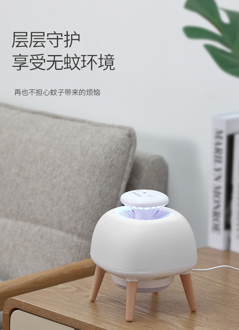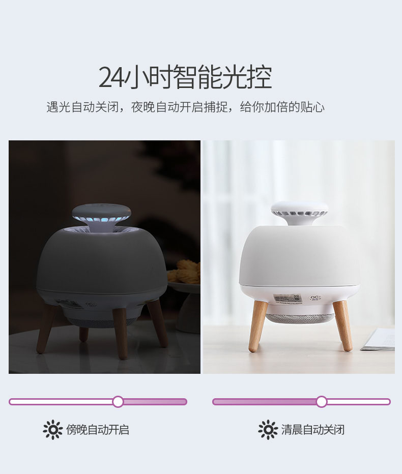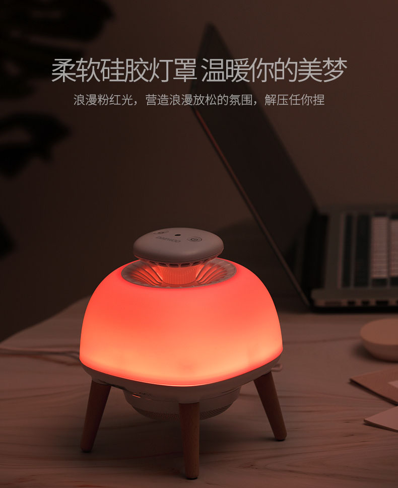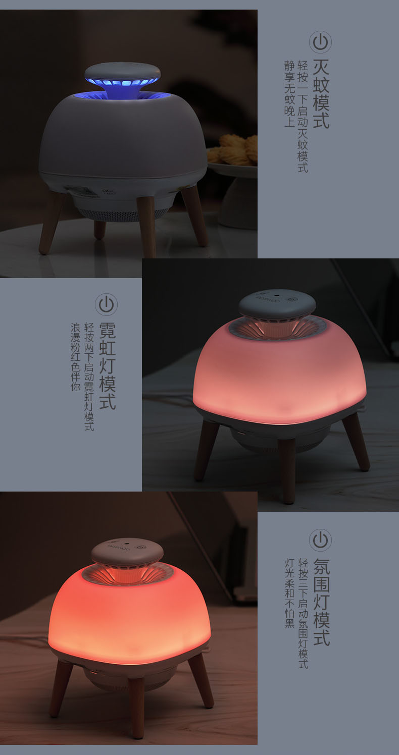 - Built-in three modes: Mosquito-trapping Mode Desk Lamp and Atmosphere Lamp