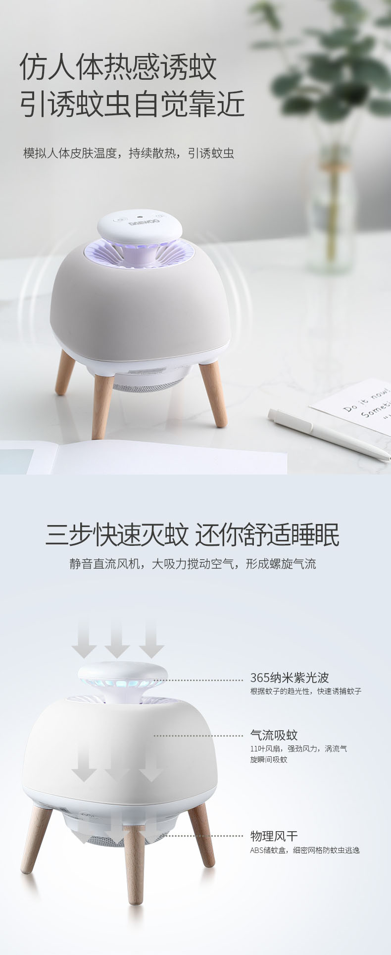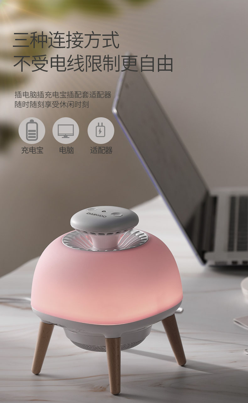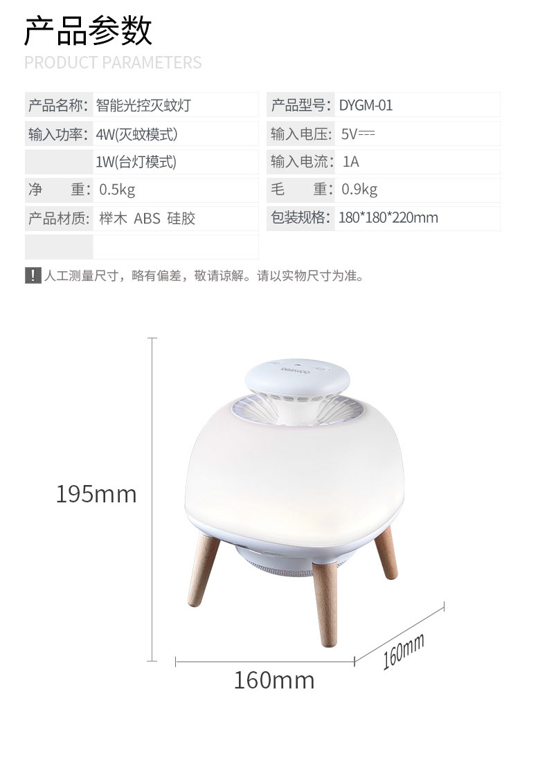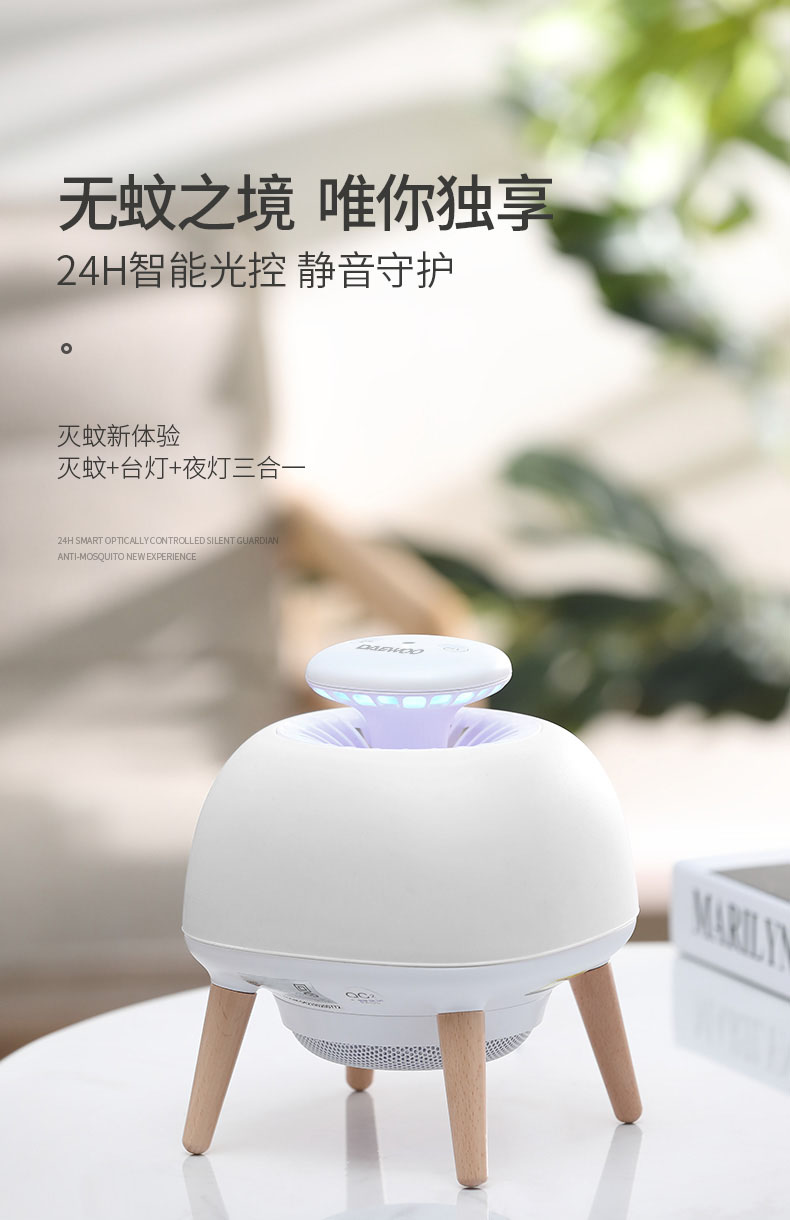 - Built-in three modes: Mosquito-trapping Mode Desk Lamp and Atmosphere Lamp