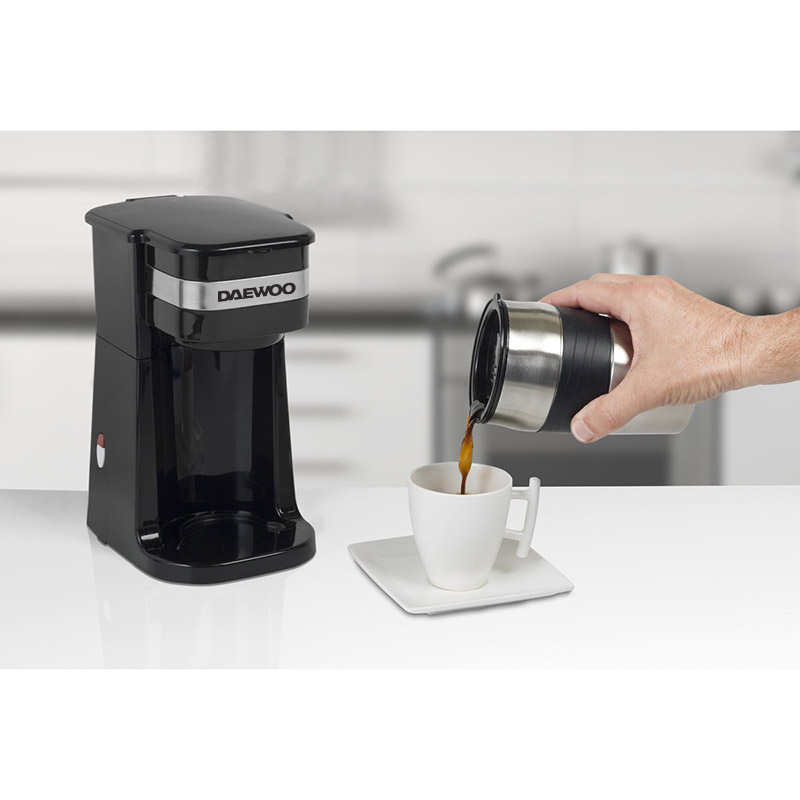 - Practical personal coffee maker with stainless steel design elements
