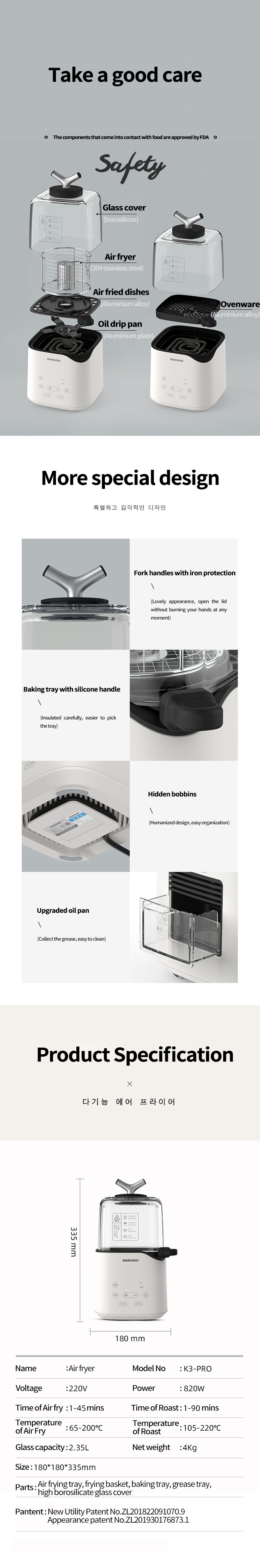- Temperature of Air Fry: 65-200°C