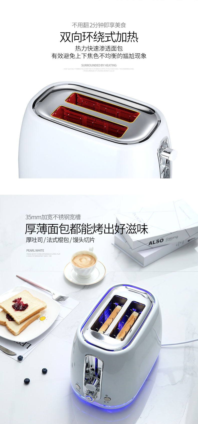 • 35mm wide slot for various bread types
